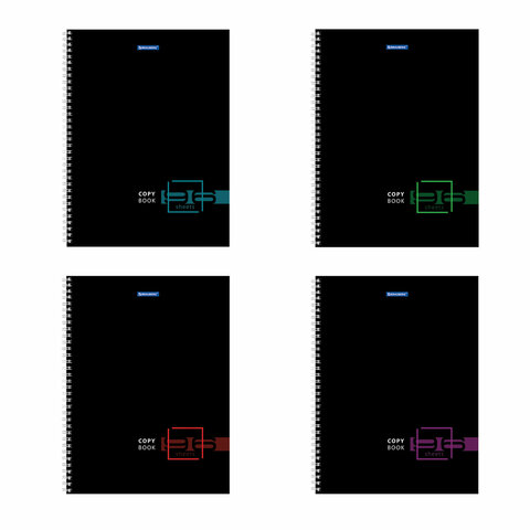 Тетрадь А4, 96 л., BRAUBERG, гребень, клетка, глянцевый лак, "Dark"