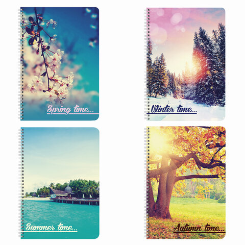 Тетрадь А4, 96 л., BRAUBERG, гребень, клетка, обложка картон, 4 СЕЗОНА