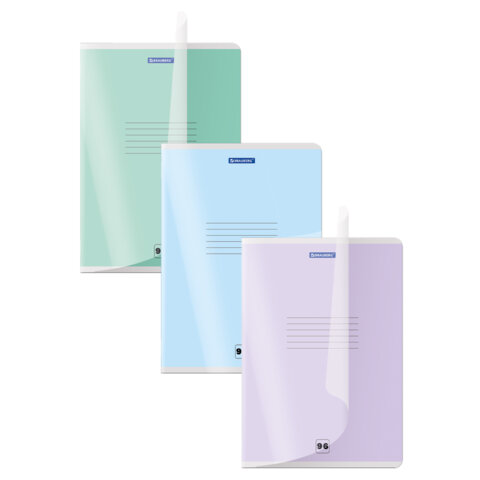 Тетрадь пластиковая обложка (прозрачная) А4 96 листов, скоба, клетка, BRAUBERG "Smart Cover", АССОРТИ (микс в спайке)