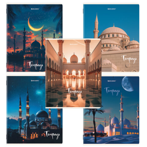 Тетрадь А5, 48 л., BRAUBERG, скоба, клетка, глянцевый лак, "Мечеть" (микс в спайке)