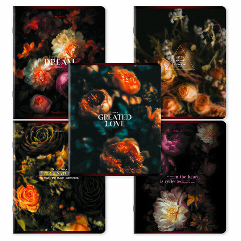 Тетрадь А5, 48 л., BRAUBERG, скоба, клетка, глянцевый лак, "Цветы", (микс в спайке)