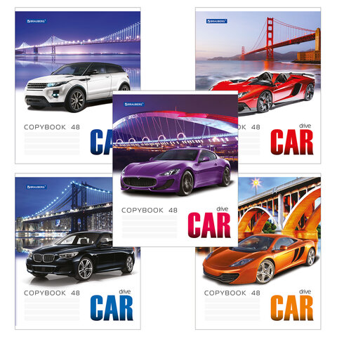 Тетрадь А5, 48 л., BRAUBERG скоба, клетка, обложка картон, КРУТЫЕ ТАЧКИ 2