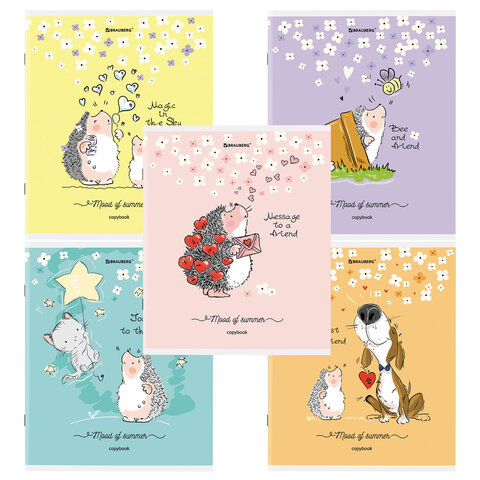 Тетрадь А5 48 л. BRAUBERG скоба, клетка, обложка картон, "Приключения Ёжика" (микс в спайке)