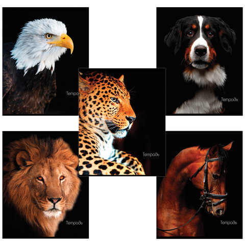 Тетрадь А5, 48 л., BRAUBERG скоба, клетка, обложка картон, ЖИВОТНЫЕ
