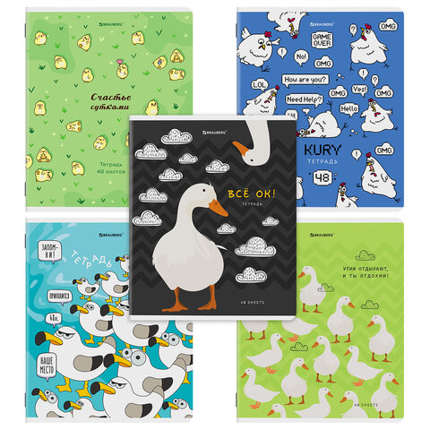 Тетрадь А5, 48 л., BRAUBERG, скоба, клетка, TWIN-лак, "КУРЛЫК И ВСЕ ВСЕ ВСЕ", (микс в ПУ)