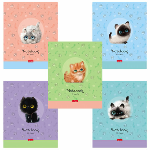 Тетрадь А5 48 л. HATBER скоба, клетка, обложка картон, "Кошарики" (микс в спайке), 075302, 48Т5В1