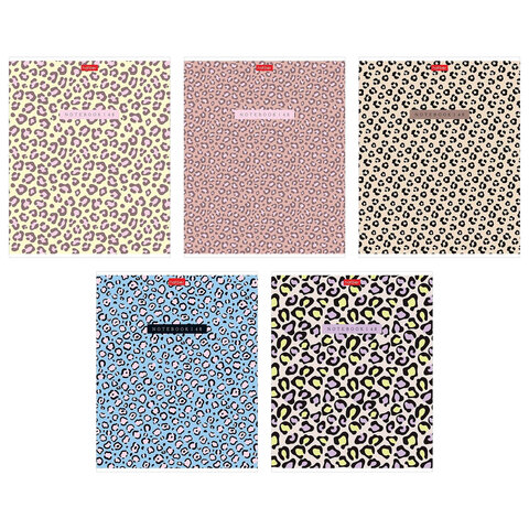Тетрадь обложка пластик, А5 48л. скоба, клетка, HATBER, LEO-принт (микс в спайке), 09, 48Т5В1пл