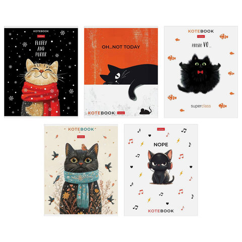 Тетрадь обложка пластик, А5 48л. скоба, линия, HATBER, Котэ (микс в спайке), 091627, 48Т5В2пл