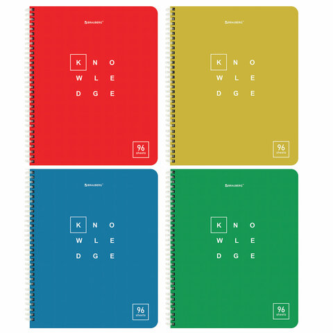Тетрадь А5 96 л. BRAUBERG, гребень, клетка, обложка картон, "Knowledge" (микс в спайке)