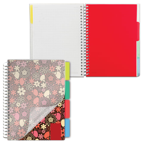 Тетрадь-блокнот 150 л., A5, 170x215 мм BRAUBERG, клетка, гребень, обложка пластиковая, 4 разделителя, "Foxy Lady"