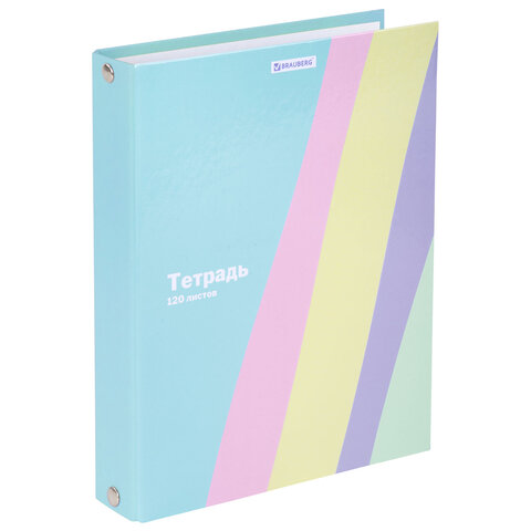 Тетрадь на кольцах А5 175х215 мм, 120 л., твердый картон, клетка, BRAUBERG, кросс-серия PASTEL