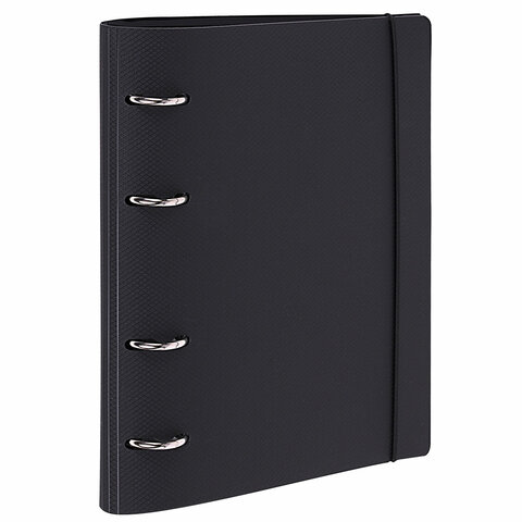 Тетрадь на кольцах А5 175х220 мм, 120 л., пластик, с резинкой, BRAUBERG, Черный