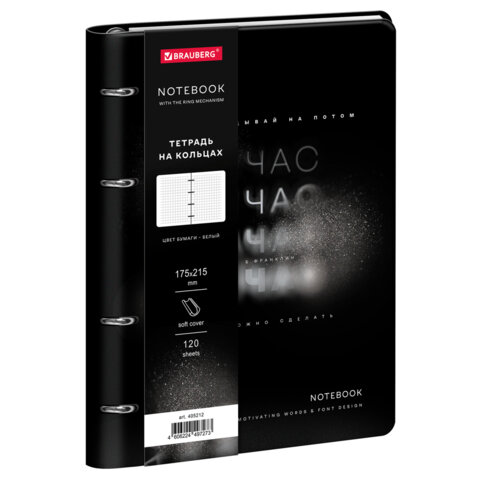 Тетрадь на кольцах А5 180х220, 120л, под кожу, BRAUBERG VISTA, Minimal черный