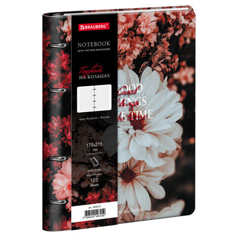 Тетрадь на кольцах А5 180х220, 120л, под кожу, BRAUBERG VISTA, Цветы