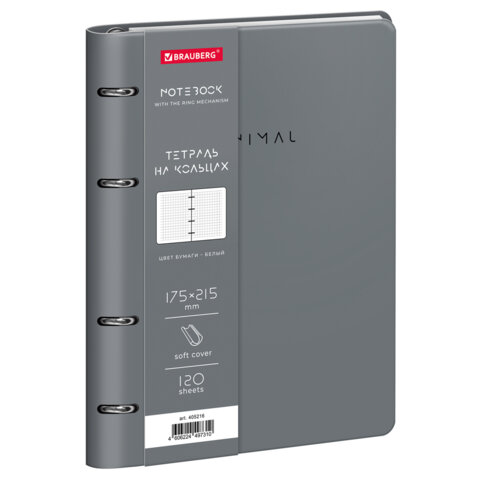 Тетрадь на кольцах А5 180х220, 120л, под кожу, фольга, резинка, BRAUBERG CLASSIC, Minimal мятный