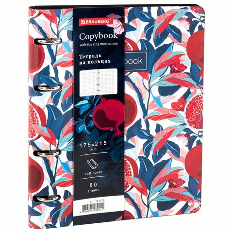 Тетрадь на кольцах А5 (180х220 мм), 80 листов, под кожу, клетка, BRAUBERG VISTA, Pomegranate
