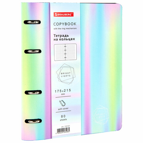 Тетрадь на кольцах А5 (180х220 мм), 80 листов, под кожу, клетка, тиснение фольгой, BRAUBERG VISTA, Gradient