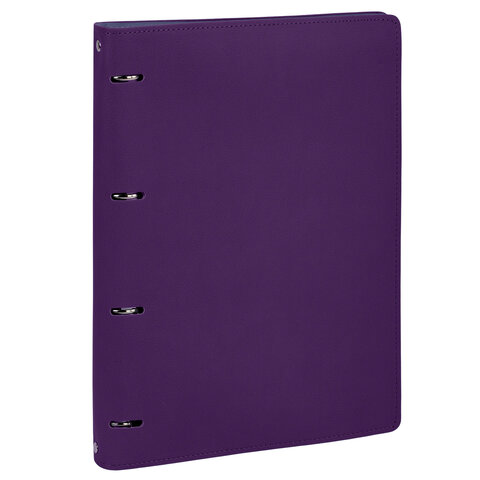 Тетрадь на кольцах БОЛЬШАЯ А4 (240х310 мм), 120 листов, под кожу, клетка, BRAUBERG "Joy", фиолетовый/светло-фиолетовый