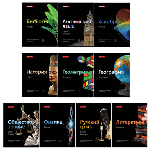 Тетради предметные, КОМПЛЕКТ 10 ПРЕДМЕТОВ, 48 л., глянцевый лак, BRAUBERG, "BLACK & BRIGHT"