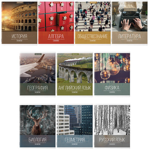 Тетради предметные, КОМПЛЕКТ 10 ПРЕДМЕТОВ, 48 л., обложка картон, BRAUBERG, "КЛАССИКА XXI"