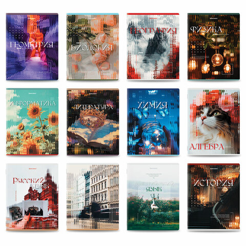 Тетради предметные, КОМПЛЕКТ 12 ПРЕДМЕТОВ, 48 л., глянцевый УФ-лак, BRAUBERG "ILLUSION"
