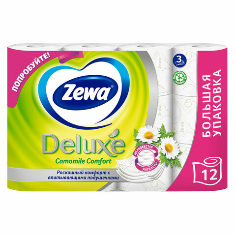 Бумага туалетная 3-х слойная 12 рулонов (12х18 м), С АРОМАТОМ РОМАШКИ, ZEWA Deluxe