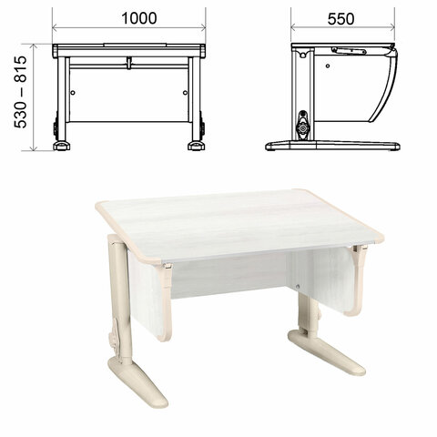 Стол-парта регулируемый "ДЭМИ" СУТ.43, 1000х550х530-815 мм, бежевый каркас, пластик бежевый, рамух белый (КОМПЛЕКТ)