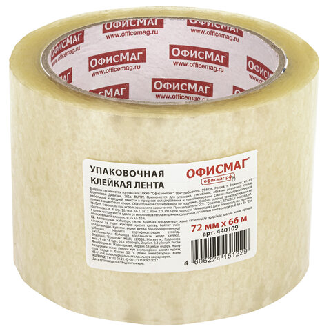 Клейкая лента упаковочная, 72 мм х 66 м, прозрачная, толщина 45 микрон, ОФИСМАГ