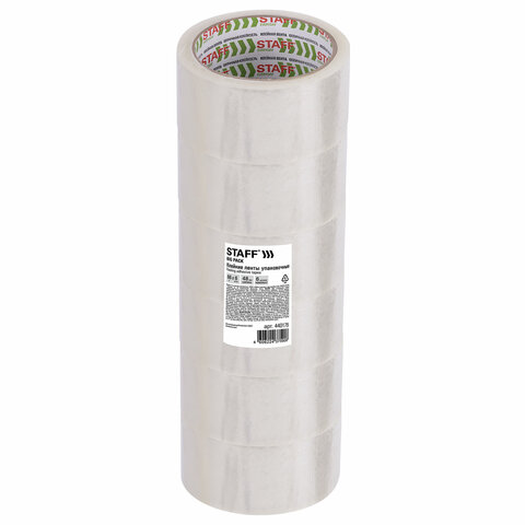 Клейкие ленты упаковочные 48 мм х 66 м, КОМПЛЕКТ 6 шт., прозрачные, 40 микрон, STAFF BIG PACK