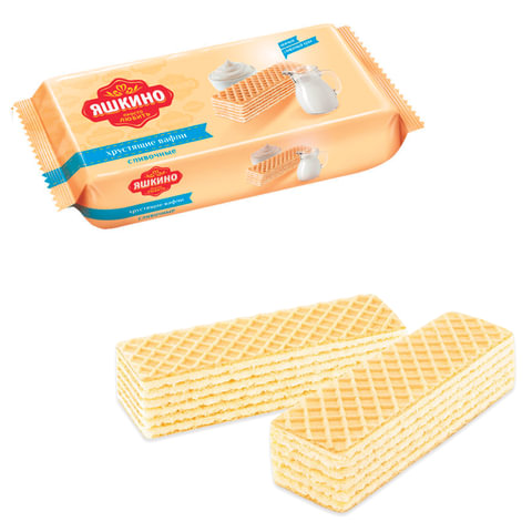 Вафли ЯШКИНО "Сливочные" с пломбирно-сливочной начинкой, 300 г, ЯВ166