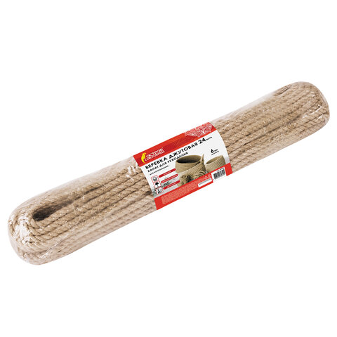 Веревка (канат) джутовая для рукоделия, декоративная, длина 24 м, d=6 мм, ОСТРОВ СОКРОВИЩ
