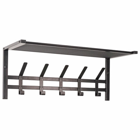 Вешалка настенная с полкой "Торонто-21", 270х670х270 мм, 5 крючков, металл, черная, ВСПТ21 Ч
