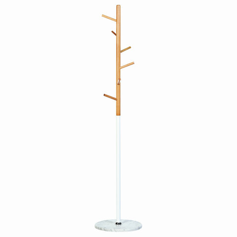 Вешалка-стойка BRABIX "CR-1906" на мраморном диске, металл белый/дерево бук, 6 крючков