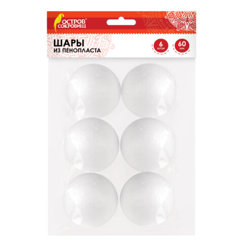 Шары из пенопласта, 60 мм, 6 шт., ОСТРОВ СОКРОВИЩ