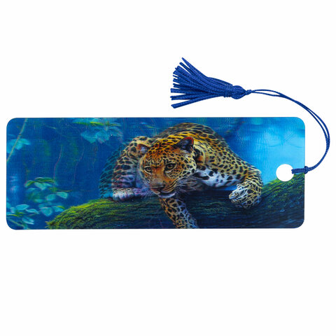 Закладка для книг с линейкой 3D-ОБЪЕМНАЯ BRAUBERG, "Леопард", с декоративным шнурком