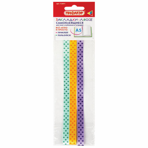 Закладки-ляссе фактурные для книг А5 (длина 28 см) "ФАНТАЗИЯ", клейкий край, 3 ленты, ПИФАГОР