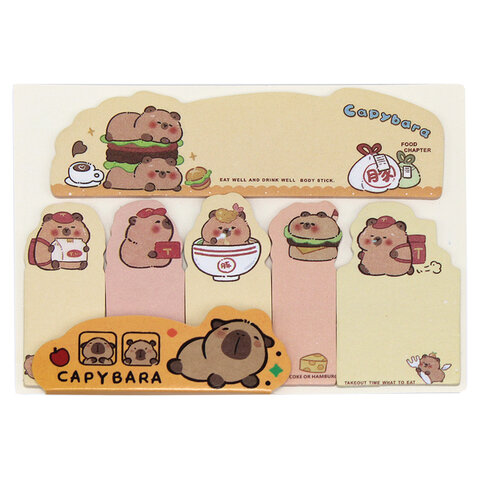 Закладки клейкие бумажные "Капибара" с печатью (6 видов х 15 листов), ассорти