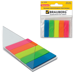 Закладки клейкие пастельные BRAUBERG бумажные, 76х25 мм, 300 штук (3 цвета х 100 листов), европодвес