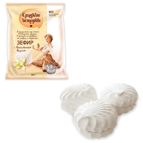 Зефир СЛАДКИЕ ИСТОРИИ, ваниль, 250 г, пакет, РФ13352
